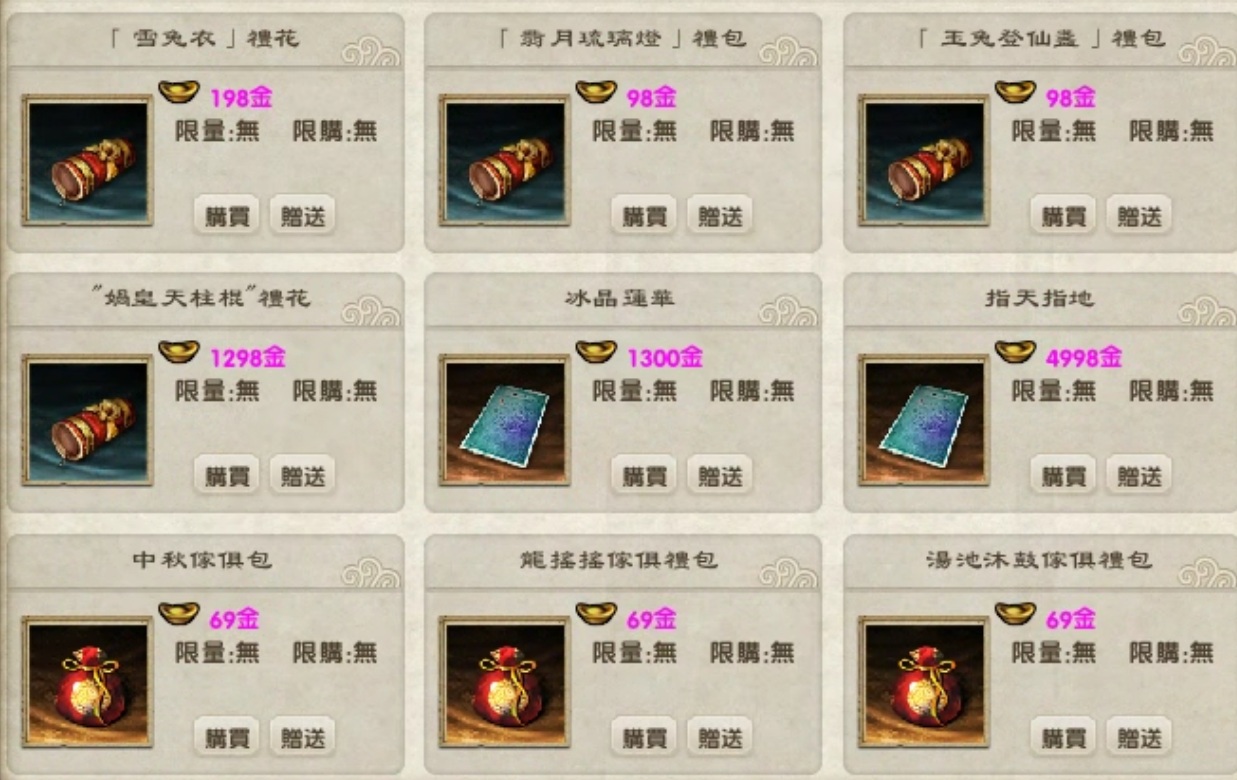 為饋贈廣大玩家對“九陰真經”的支持,官方本次特別推出懷舊商品,有需求的玩家敬請保握機會唷!