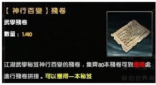 ►江湖內功殘卷包:使用後可隨機獲得無妄神功,殘陽功訣,紫瑞心經,五行心法,逆天邪功,冰心訣,毒蛤經,混元功,血海刀罡其中一種內功殘卷10張(禮包綁定殘卷不綁定)。